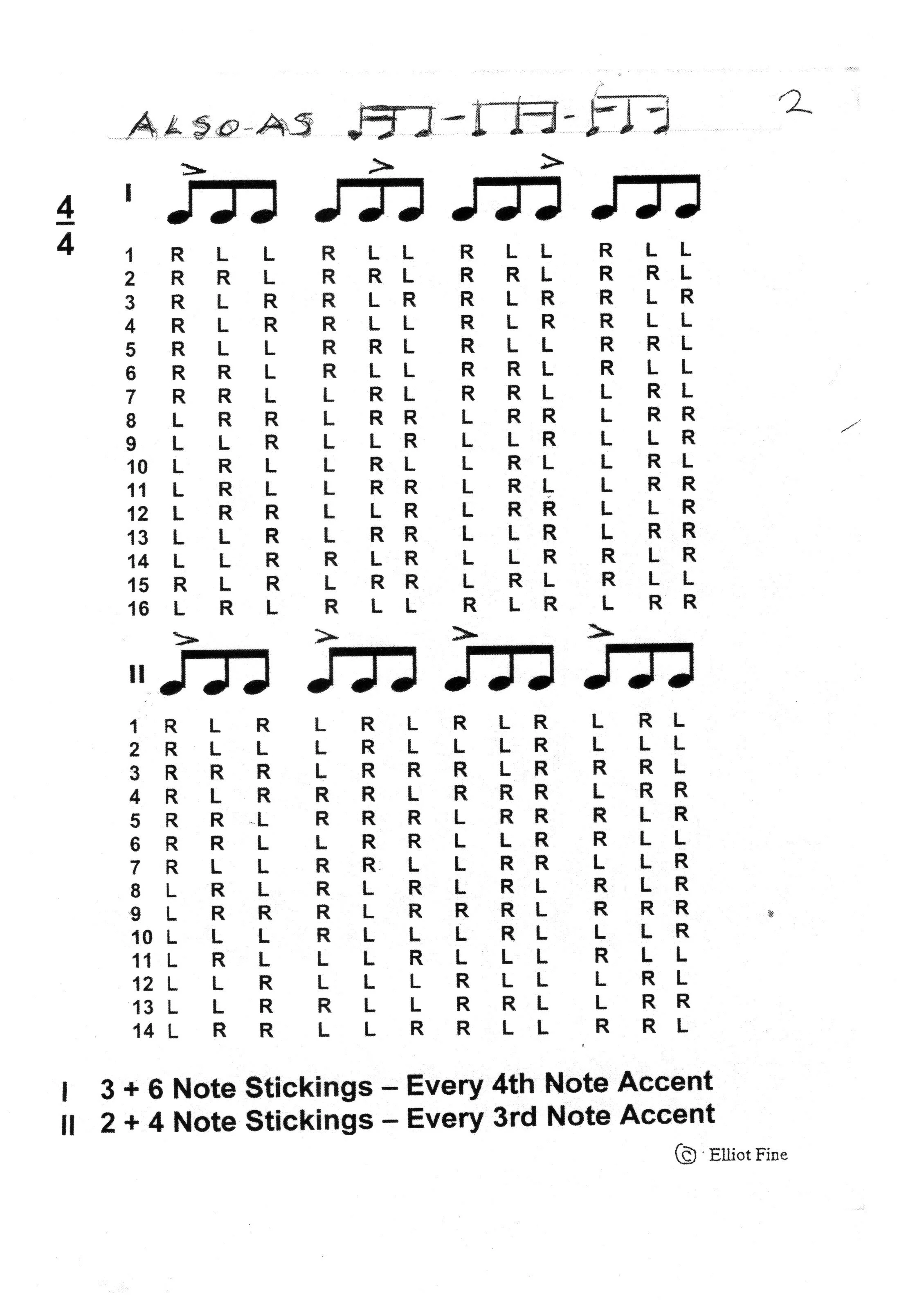 The video deals with line #6 in pages 1, 2 & 3, a displaced paradiddle-diddle. There are a lot of other stickings to explore as well.